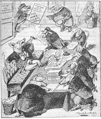 Les cochons avaient en effet appris à écrire à partir d'un vieil abécédaire des enfants Jones. Tous apprennent ensuite à lire quelques lettres, quelques mots ou couramment selon leur capacité. Les animaux entament peu après la fenaison. Boule de neige se montre très actif, répartissant les animaux en commissions. Napoléon, en revanche ne fait pas grand chose, si ce n'est d'enlever des chiots à leurs mères pour les éduquer.